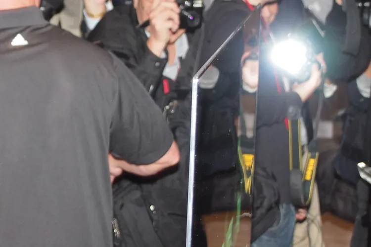 Az első rész végére maradt a nagy esemény, az 55 colos OLED leleplezése. A tévé 4mm vastag, 7,5 kg. A világ legnagyobb, legvékonyabb és legkönnyebb OLED tévéje (egyelőre legalábbis biztosan). Van benne CINEMA 3D, így a meglévő szemüvegekkel (is) működik. Egyelőre ennyi infót kaptunk róla, holnap végre megnézzük élőben is.