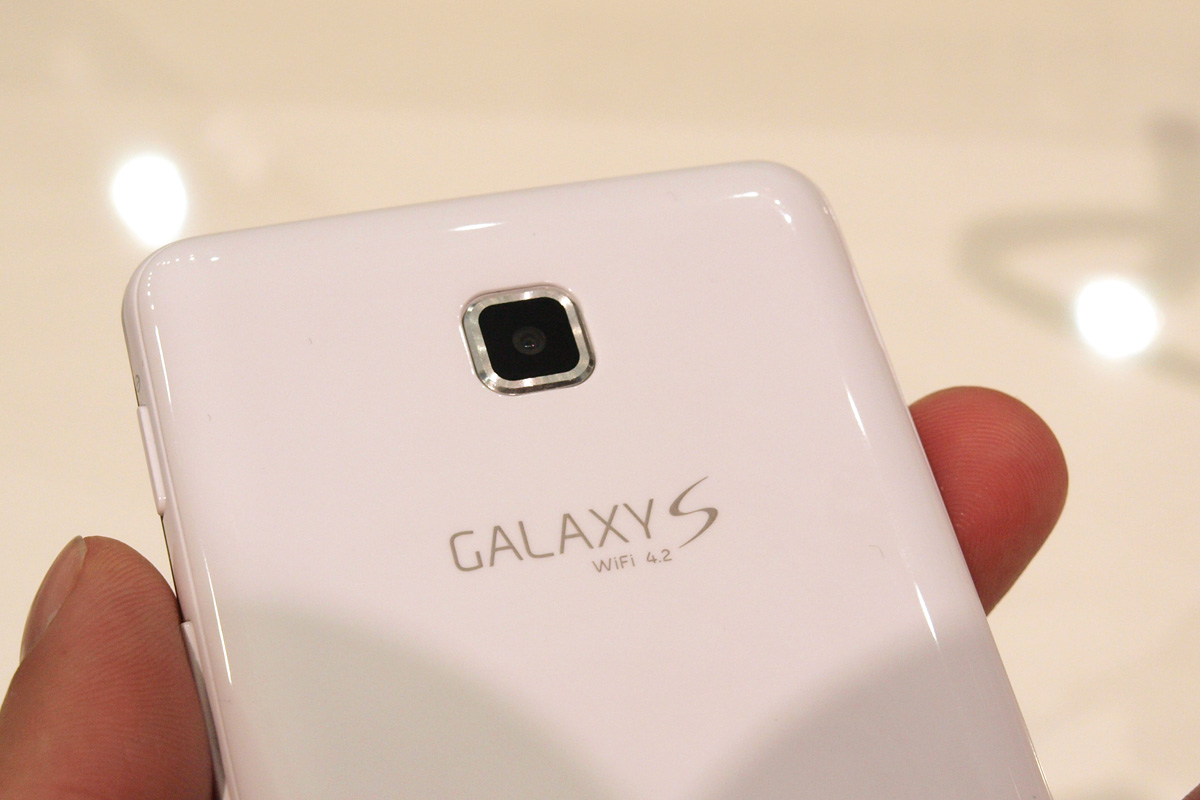 A kisebb jelzőt jelen esetben a tudásra és a képméretre is érhetjük, 5 col helyett ugyanis csak 4,2 colos képátlót kapunk és a digitális tunerek is kikerültek a készülékből – ha ezeket a dolgokat nem számítjuk, akkor azonban szinte egy az egyben a Galaxy S WiFi 5.0 képességeit kapjuk meg. Ami azonnal feltűnhet, az az, hogy a kütyü fehér külsőt kapott, ami a műanyag borítással együtt talán nem a legszerencsésebb választás, kicsit olcsó érzete van ugyanis a Galaxy S WiFi 4.2-nek tőle (ami nem azt jelenti, hogy az összeszerelés minősége, az illesztések ne lettek volna rendben). A formavilág alapvetően nem változott, azonban a Samsung kicsit szögletesebb vonalvezetést választott – valószínűleg azért, hogy ezzel is megpróbálja elkerülni újabb perek áradatát az Apple irányából.
