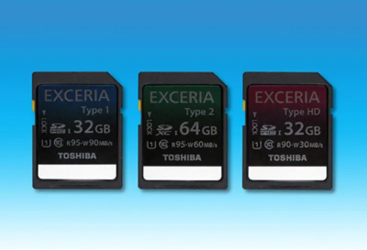 Az új széria valamennyi tagja teljesíti az SD Memory Card Standard v3.0 UHS-I szabvány feltételeit, egyes példányokra pedig a Toshiba egyenesen azt állítja, hogy a világ leggyorsabban működő SD-kártyái. Az EXCERIA termékvonalon belül a gyártó három sorozatot is kiad, amelyek Type 1, Type 2 és Type HD névre hallgatnak. Az olvasási sebesség az első két csoportnál 95 MB/s, a HD változatnál 90 MB/s. Ami igazán eltérő, az az írás tempója: a specifikáció szerint a Type 1-es kártyák esetében ez 90 MB/s, a Type 2-es változatok viszont már „csak” 60 Mbájtot tudnak felírni egyetlen másodperc alatt, míg a videokamerákba szánt HD változat 30 MB/s-os sebességre képes. Ezek természetesen maximális értékek, a minimális teljesítményt a gyártó jóval alacsonyabban határozta meg, és csak UHS class 1 illetve SD class 10-es jelzéssel látta el kártyáit.