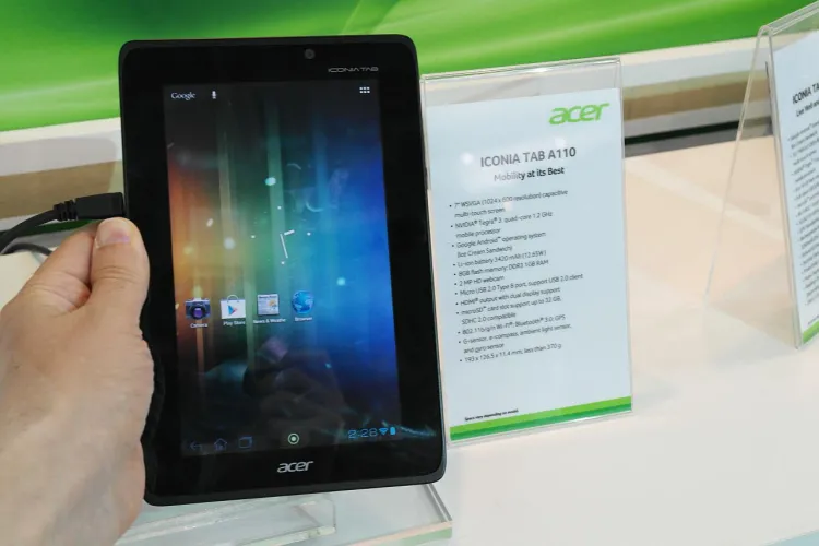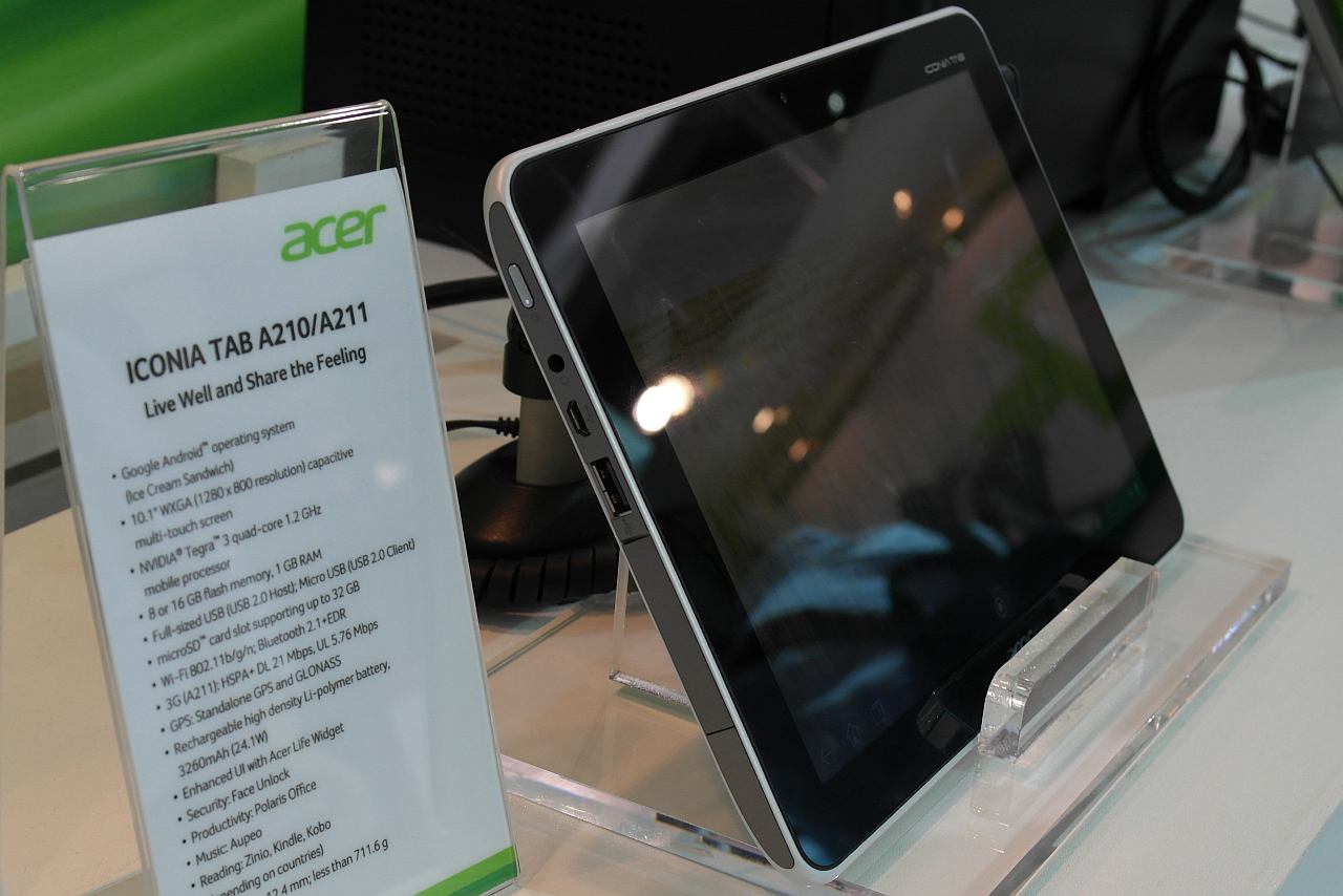 De térjünk vissza az Iconia Tab A210-re és A110-re, ezek képviselik ugyanis a következő generációt. Előbbi 10, utóbbi 7 colos kijelzővel rendelkezik, és más a kijelző felbontása is: a nagyobb változat 1280×800 pixeles, a kisebb pedig 1024×600 pixeles, viszont egyik sem IPS. Belül többé-kevésbé ugyanazt a hardvert találjuk: a tableteket Tegra 3 rendszerchip hajtja meg 1 Gbájt RAM társaságában, míg az adatokat az A210 esetében 8 vagy 16, az A110 esetében pedig 8 Gbájtos memórián tárolhatjuk. USB 2.0, microHDMI és microUSB mindkét gépre jutott, dokkoló csatlakozó viszont nincsen egyiken sem, ami arra utal, hogy az Acer nem a szolgáltatásokkal, hanem az árral akar majd versenyezni. Minimális mértékben eltér a tabletek külső megmunkálása is, de high-end minőséget sajnos egyik esetben sem kapunk. Az A110 az egyébként, amelyik lefelé lóg ki a sorból, róla messzebbről is látszik, hogy műanyagból készült.