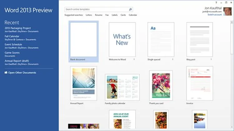 Az új Office, amely végül – nem túl meglepő módon – az Office 2013 nevet kapta, alapos ráncfelvarráson esett át, kezelőfelületét például részben újrarajzolta a Microsoft, hogy ne csak asztali gépeken, hanem érintőképernyővel szerelt eszközökön is lehessen használni. A tervek szerint az irodai csomag alapértelmezettként rajta lesz az összes olyan táblagépen, amelyre a Windows RT kerül, így a kézzel való irányíthatóság valóban fontos kérdésnek tűnik. Ennek ellenére a Preview változatban a Microsoft csak két alkalmazásban, a OneNote-ban és a Lyncben alkalmazza teljes egészében a Metro típusú felületet, a többi szoftvernél a változások egyelőre kimerülnek abban, hogy a főmenü metrós, és, hogy az ikonok között nagyobb a hely. Mindkét metódus ismerős lehet egyébként: az UI teljes átrajzolása gyakorlatilag olyan, mint a Windows 8 esetében, a Microsoft elsősorban arra figyelt, hogy ujjal az alapvető feladatokat tudjuk elérni. Az ikonok széthúzása ugyanakkor a Windows 7 esetében alkalmazott út, amely azonban nem bizonyult túl sikeresnek, ezért meg lennénk lepve, ha a Microsoft a végleges verzióban sem módosítaná radikálisabban a négy alapprogram kezelőfelületét.