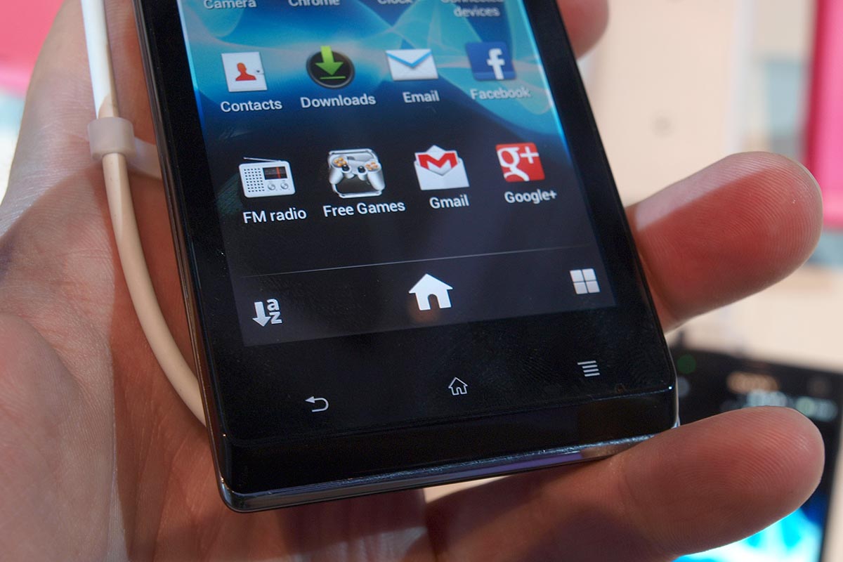 Formáját illetően az Xperia J sem különbözik túlságosan a másik két mobiltól, persze ez a telefon már érezhetően kisebb, és a kijelző felbontása miatt valódi (de szintén érintős) gombok is kerültek a panel alá. A gyengébb processzor mellett valószínűleg a memória is kevesebb, tippre 512 Mbájt. Az UI ugyan nem akad meg, de érezhetően lomhábban futott, pedig még a kijelző felbontása is kisebb, így kevesebb pontot kell a grafikus gyorsítónak kiszámolni. Amiben az XPERIA J is erős, az a tartalom – de sajnos ebből nekünk egyelőre nem jut, pedig a japán gyártó már 60 napos próbaverziót is kínál a felhasználóknak. Viszont akkor is érdemes lehet választani, ha pink vagy pezsgőszínű változat érdekel minket.