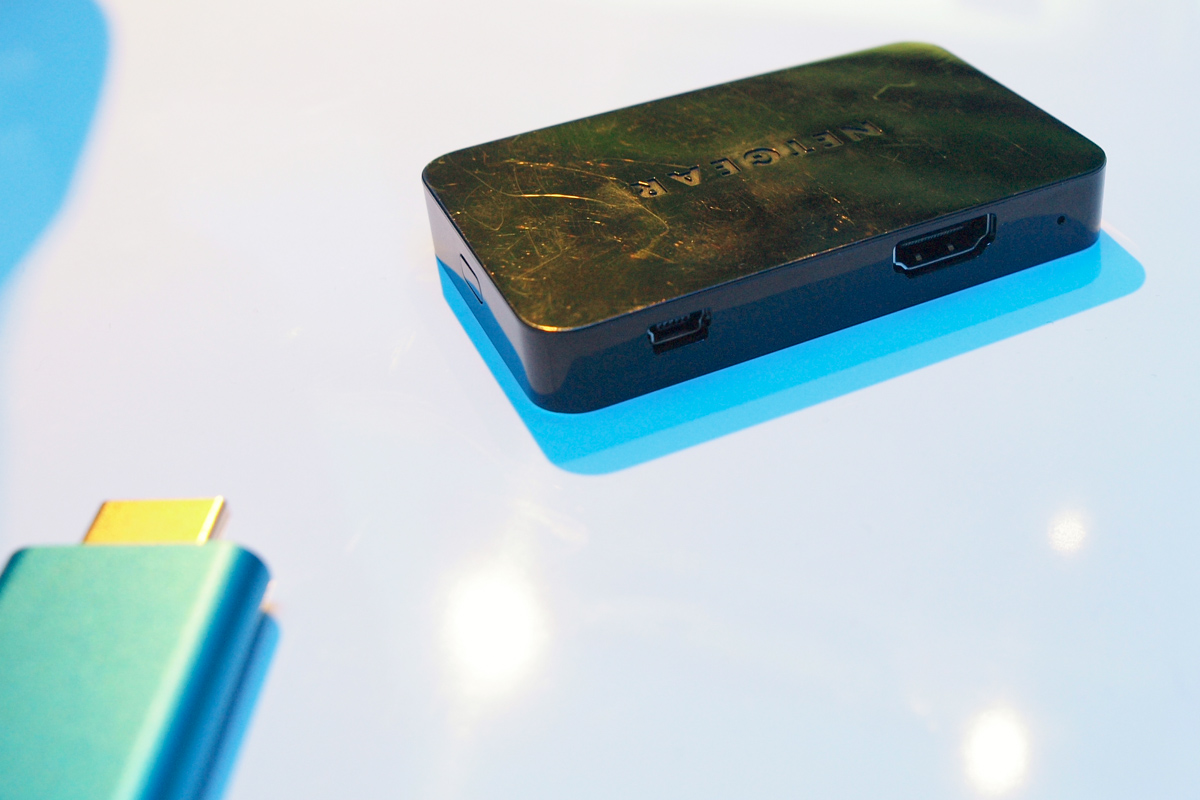 Az Intel WLAN hálózatokon vezeték nélküli kép- és hangátvitelt lehetővé tévő technológiája, a WiDi a 2010-es CES-en mutatkozott be, tavaly pedig a továbbfejlesztett verzióról számoltunk be. Az amerikai vállalat 2013-ban is továbbfejlesztette a technológiát, ezúttal azonban nem a funkcionalitás, hanem a kütyük fogyasztása és fizikai mérete változott. Az Intel standján két apróságot láttunk, mindkettőnek az az érdekessége, hogy megelégszenek az USB port nyújtotta energiamennyiséggel. Az Intel adót és vevőt is bemutatott, utóbbi (a képünkön a kisebb, USB stickre hajazó kütyü az) elsősorban Core i processzoroktól mentes notebookok vagy WiDi-t nem támogató Blu-ray lejátszókhoz ajánlható.