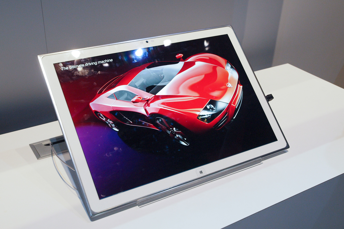 Egy áltagfelhasználó alighanem sokkot kapna a Panasonic 20,4 colos kijelzőjével szerelt táblagépétől, de vannak olyan területek, amikor sem a képernyő felületéből, sem a rajta tárolható információmennyiségből nem elég. A Panasonic éppen ezért szerelt UHD felbontású panelt a kütyübe, amelyet elsősorban profi felhasználóknak, például fotósoknak és mérnököknek ajánl. A tablet úgy néz ki, mint bármilyen más táblagép, csak mindene nagyobb: a kijelzője, a kávája, a tömege és a felbontása is. Jár hozzá egy kapacitív stylis (digitális toll) is, ami az átlagosnál jóval precízebb, ez teszi lehetővé, hogy nagy pontosságot igénylő feladatra is használhassuk a masinát. A rövid próba során valóban pontosnak bizonyult a toll, a 4K-s kijelzőnek hála pedig teljesen olyan volt a rajzolt nyom, mintha ceruzával dolgoztunk volna. A toll nem nyomásérzékeny, viszont kétféle rajzolási vastagságot támogat.
