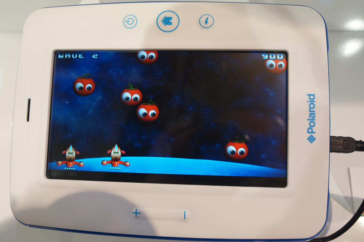 Ami viszont nagyon kellemes, az az, hogy a Polaroid az ICS fölé egy extra kezelőfelületet is húzott, amely elrejti a kíváncsi szemek elől a rendszerbeállításokat, és helyett azokra a programokra (többségében játékokra, összesen 32 appra) koncentrál, amelyek a gyerekek figyelmét képesek lekötni. A szoftverek célja természetesen a tanulás, az agresszió nem is jellemző – még a képen látható klasszikus, lövöldözős játékban sem űrhajókra, hanem mosolygó paradicsomokra lehet támadni.