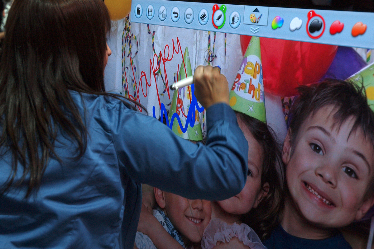 Az tollat kétféle dologra is használhatjuk: a telefonról vagy táblagépről átküldött képekre ráírhatunk rárajzolhatunk valamit (a fotókat aztán vagy a telefonra/tabletre vagy a tévébe illesztett SD-kártyára menthetjük el), emellett pedig kiválóan kezelhetjük az okostévé funkciókat is. Akár még a játékokat is lehet vezérelni a stylussal. Az utóbbi dolog működési elve teljesen egyértelmű, míg az előbbi, nem túl nagy meglepetésre, úgy működik, hogy a tollat hozzá kell érinteni a tévéhez, amire a készülék készít egy képernyőmentés, majd megjeleníti a rajzoláshoz szükséges menüt (ezen lehet például a toll vastagságát beállítani vagy színt választani), és már indulhat is a móka. Az elkészített művünket természetesen nemcsak elmenteni lehet, hanem rögtön meg is oszthatjuk közösségi oldalakon vagy elküldhetjük valakinek e-mailben is.