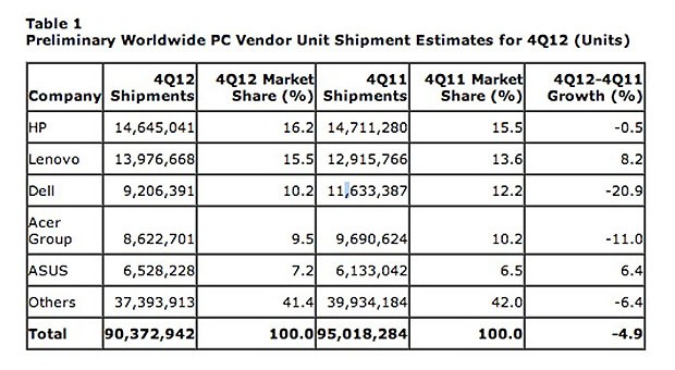 Összesen egyébként 90,37 millió PC fogyott 2012 utolsó negyedévében a Gartner felmérése szerint, majdnem 5 millióval kevesebb, mint a harmadik negyedév során. Nem túl meglepő módon a Gartner a táblagépek terjedésével magyarázza a csökkenést, hozzátéve, hogy valószínűleg nem használnak kevesebben PC-t, csak éppen ma már nem az a jellemző modell, hogy a családban mindenkinek saját számítógépe van. Ehelyett van egy (vagy esetleg két) gép, amivel mindenki elintézi a „nehezebb” feladatokat, míg a levelezéshez, a közösségi szolgáltatásokhoz valamint a multimédiás tartalmak fogyasztásához inkább jobban személyre szabható táblagépet választanak az emberek. Ez nem is csoda, ha figyelembe vesszük, hogy a Nexus 7 vagy a Kindle Fire olcsóbb verzióinak hála ma már ez a legolcsóbb alternatíva, ráadásul a táblagépeket nemcsak helyhez kötötten, hanem a lakásban bárhol, sőt, a lakáson kívül is lehet használni.