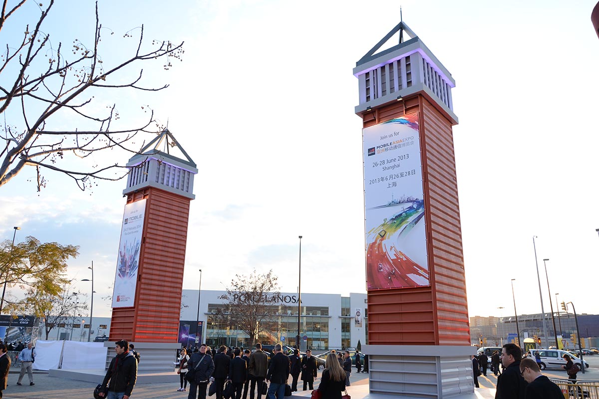Az egyik első postunkban már írtunk arról, hogy a kiállítást szervező GSMA a két torony replikáját az új helyszínre is elvitte – akkor azonban még nem tudtuk megnézni őket, mert a hivatalos átadás csak hétfőn reggel volt, így lepel borította mindkettőt. Hétfőn este viszont kifelé menet lencsevégre kaptuk a tornyokat, amelyekre, kis túlzással, csak formájuk alapján ismerünk rá, mert amúgy egészen elképesztően rondák lettek. Oké, értjük mi, hogy az, hogy pontos másolat helyett egy modernebb anyagokból álló épületek készült, az alapvetően a haladást jelképezné, de összességében mégis csak sikerült jól kibabrálni a történelemmel – még akkor is, ha itt hivatalosan már csak a másolat másolatáról beszélhetünk.
