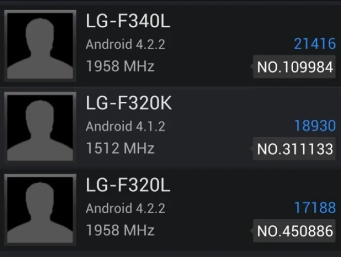 Az elterjedt benchmark programban feltűnt az LG új zászlóshajója három teljesen különböző eredménnyel vagyis a mobil három különböző processzorral jelenhet meg. A készülékek típusszámai F320K, F320L és F340L, valószínűleg régiónként lesznek eltérések a CPU-t illetően.