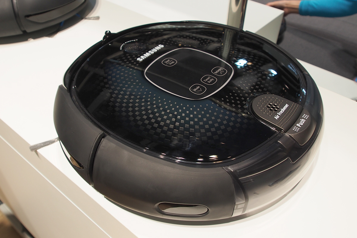 A Samsung sajtóanyaga szerint az idei újdonság a robotok területén a Pop-Out Brush, vagyis a tavaly bemutatott, két oldalra kiugró bajuszkefék. Pedig a standon mást is láttunk.