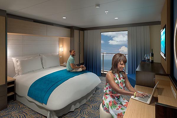 Egyébként a szoba kialakítása közben felmerült egy probléma, mégpedig az, hogy a képet és a hajó mozgását mindenképpen összhangba kell hozni, nehogy az érzékenyebb gyomrú vendégek rosszul legyenek. A problémát az jelenti, hogy normál körülmények között a kép nem azonnal, hanem akár másodpercekben mérhető késleltetéssel jut el a tévékre. Ezt kiküszöbölendő, nemcsak a szobák erkélye speciális, hanem a mögötte álló technológia is; a szoba tervezője az MIT valamint Harvard egyetemek kutatóival közösen dolgozott ki egy üvegszálas adattovábbítási rendszert, amely kellően alacsony késleltetéssel működik a probléma megszűntetéséhez.