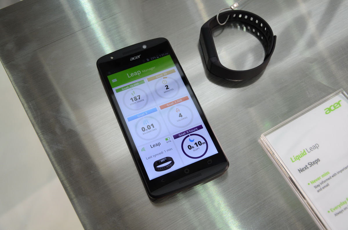Sejtettük, hogy a Computexen is az egyik legnépszerűbb kategória a viselhető eszközöké lesz, és ez oly annyira így van, hogy most már az olyan vállalatok is, mint az Acer, látnak fantáziát az ilyen jellegű kütyükben. A tajvani gyártó a Computex előtti napokban jelentette be a Liquid Leap smartband készüléket, amely egy okostelefonra csatlakoztatható fitneszkütyü, némi okosórás beütéssel. Az Acer karkötője kicsi és könnyű, pántja szilikonból készült. A kijelző nem túl nagy rajta, és csak monokróm, viszont a célnak ez éppen megfelel. Gombnak nem volt rajta hely, így a felélesztéshez egyszerűen csak rajta kell tartanunk a kezünket a kijelzőn 1 másodpercig. A karkötő természetesen tudja számolni a lépéseket, és ebből megbecsüli azt is, hogy mekkora távolságot tettünk meg. Találunk rajta néhány alkalmazást is, de ezek igazából csak mutatóban vannak, mert nagyon alap programokról van szó (pl. az alvásunk időtartamának méréséhez, zenelejátszó vezérléséhez), és a kínálatot nem is lehet bővíteni. Az óra a kijelzőjének méretéből adódóan elég kevés adatot tud megmutatni, így azokat inkább a kapcsolódó okostelefonos alkalmazáson keresztül érdemes nézni, amelyből látszik az is, hogy mennyi kalóriát égettünk el, illetve mennyi ideje tart az edzés. Amikor nem edzünk, akkor természetesen az időt is meg tudjuk nézni, azonban az 1 colos kijelző mozgásra nem kapcsol be, csak érintésre.