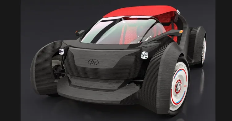 A kiállításon egy különleges elektromos autót készítettek el, amelynek mindössze 40 alkatrésze van (az elektronikát nem számítva), egy hagyományos autó 20 000 alkatrészével szemben. Ehhez egy nagy területű 3D-nyomtatót használtak, amit az iparágban inkább BAAM, azaz Big Area Additive Manufacturing gépnek neveznek. Működése pontosan olyan, mint egy asztali 3D-nyomtatóé, viszont műanyag helyett szénszál-erősítésű műanyagot használ. Természetesen csak azokhoz az alkatrészekhez, amelyeket nyomtatni lehet: a kerék gumija és a lengéscsillapító nem tartozik ide.