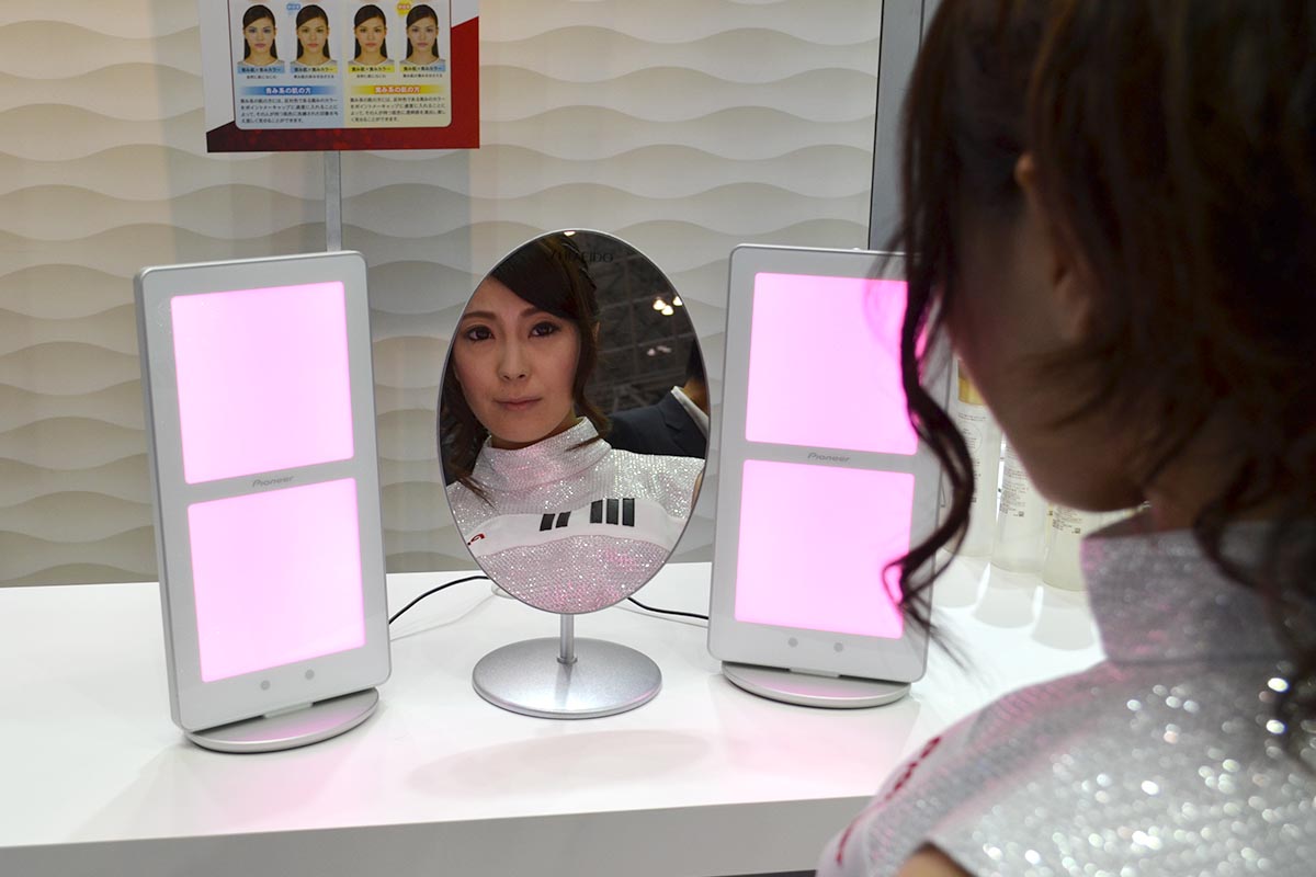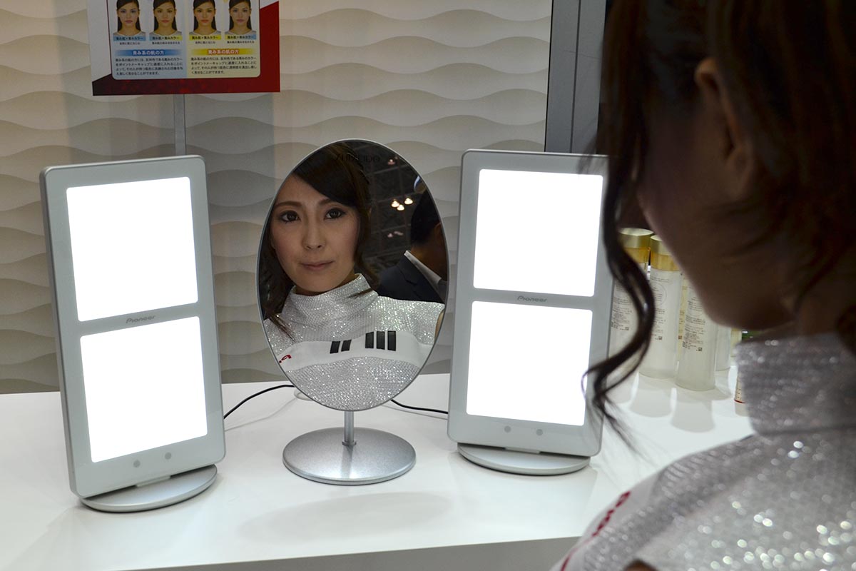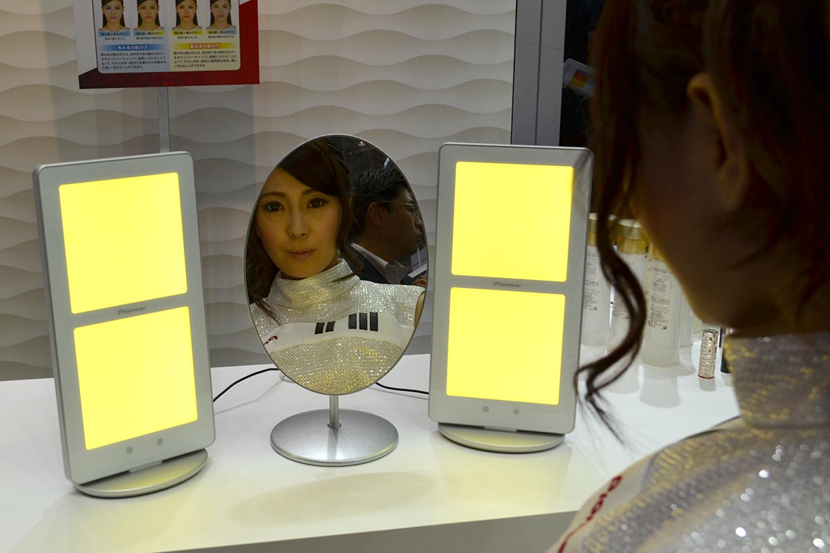 Rutinos CEATEC látogatóként ez persze nem volt újdonság számunkra, az eddig látott prototípusok ugyanakkor rendkívül drágák voltak. A Pioneer és a Mitsubishi tavaly jelentették be, hogy közösen olyan eljárást dolgoztak ki, amellyel az OLED lámpák előállítási költsége akár 90 százalékkal is csökkenthető, idén márciusban pedig a nagyüzemi gyártást is elindították. A Pioneer most, október elején hozta forgalomba a modulra épülő első terméket, amely egy tükör mellé helyezhető fényforrás. A lámpa két 92×92 mm-es OLED-panelt tartalmaz, amelyek egyenként 3000 cd/m² fényerősség kibocsátására képesek. Fényük szórt, így a kozmetika ipar ideális célterület számukra. Ennél azonban érdekesebb, hogy nemcsak fényességük változtatható, hanem a színük is, mégpedig egy távirányító segítségével.