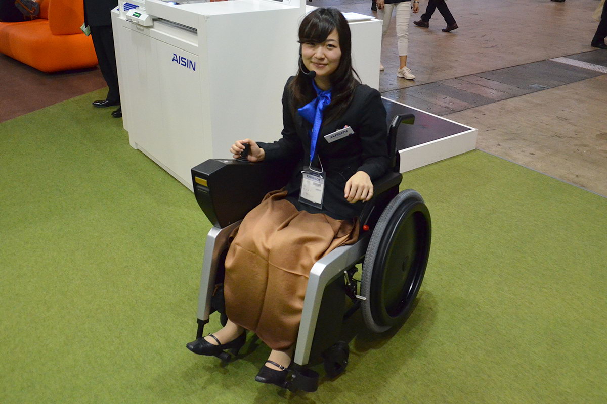 Az Aisin Seiki tolószékének legnagyobb érdekessége, hogy a jobb karfában (ami a képen balra látható) egy lézeres érzékelő is lapul, így ha valaki a „száguldó” járgány elé lép, akkor képes magától lefékezni.