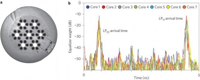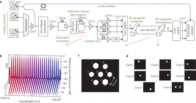 A szálakon térbeli multiplexelést is használtak (pont, mint a WiFi kártyák MIMO rendszerében), és ezt megfejelték a WDM (Wawelength division multiplexing) technikával, amely a fény különböző hullámhosszai között teremt kódolási kapcsolatot. Az előbbivel 5.1 terabit/s sebességű vivőket hoztak létre, amelyet az utóbbival 50-el szoroztak. Mindehhez pedig egy olyan precíziós üvegszálas kábel kellett, amelynek hét belső magja (üvegszála) van. Mivel a gerinchálózat jelenleg leggyorsabb hálózati része, az OC-768 39,8 Gbps sebességű, az új kábelre és kommunikációs eszközökre való lecserélése évtizedekre biztosítaná a gerinchálózat megfelelő sebességét.