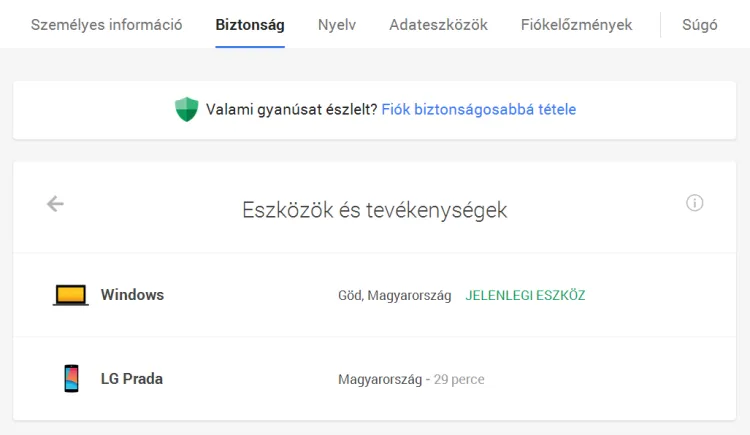 Természetesen a nyomkövetés, a távoli csöngetés és az adatok törlése is elérhető ebből a menüből, mint ahogyan a fiók jelszavának a megváltoztatása és a biztonság növelésének néhány további lehetősége is. Használjuk egészséggel!