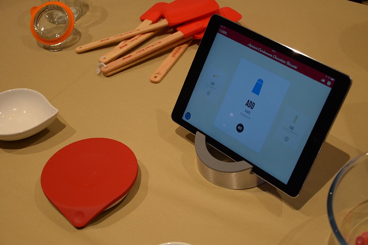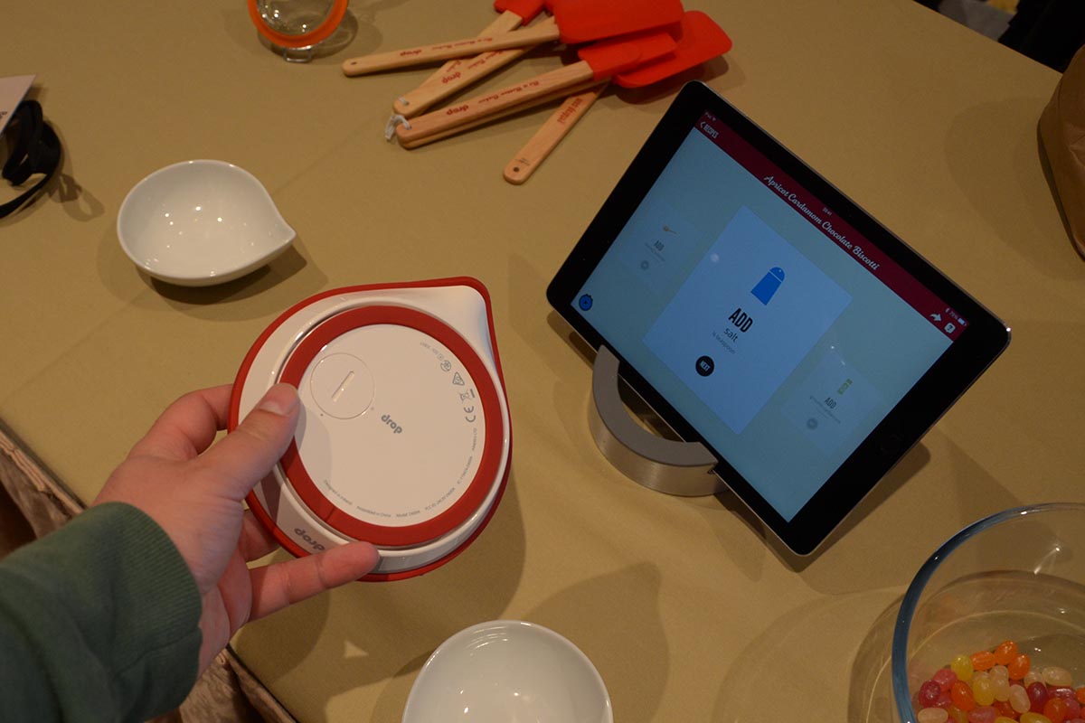 Az okosmérleg egyébként nem is rossz módja a közösségi tudás és az internetben rejlő lehetőségek kihasználásnak; a Drop nem más mint, egy Bluetooth kapcsolat létesítésére is képes konyhai mérleg (azért BT és nem WiFi, mert így a mérleg egyetlen elemről nagyjából egy évig képes üzemelni), amelyet a táblagépen futó alkalmazással járathatunk a csúcsra. A tabletre (vagy akár telefonra) letöltött alkalmazás segít a főzésben, mégpedig oly módon, hogy nemcsak recepteket lehet letölteni vele, hanem az elkészítés fázisain is végigmenni.