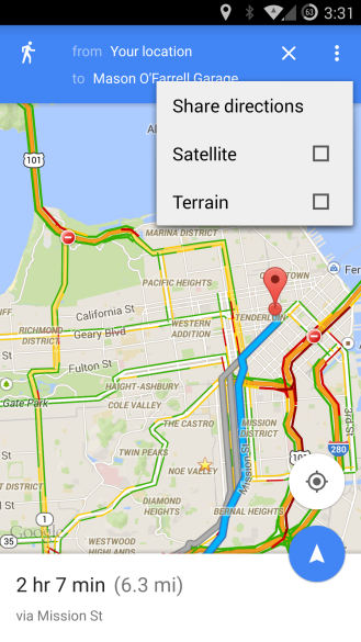 Aki mostanában frissíti az Google Térképet a Play Áruházból, az tervezzen gyorsan egy tetszőleges útvonalat, majd nyomja meg a három pontos menügombot – rögtön látni fogja, hogy egy új, Share directions menüpont is megjelenik, amivel a megtervezett utat számozott utasítások formájában bemutató linket lehet megosztani ismerősökkel akár Facebookon, akár mondjuk Gmailen keresztül.