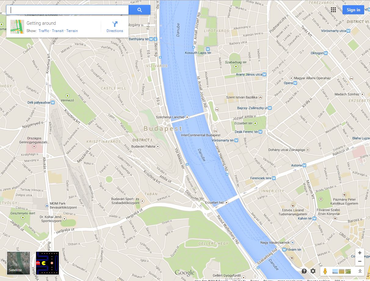 Ezen változtathatunk most a Google Térkép segítségével, mégpedig úgy, hogy megnyitjuk az oldalt, és közepes nagyításban (hogy azért látszódjanak az utak), rákattintunk egy tetszőleges pontra. Ekkor lent, a megszokott fotónézet mellett megjelenik egy új gomb, amire rákattintva már indulhat is a játék a környező utcákon. A grafika igazán retró, az irányításra pedig a kurzormozgató gombok szolgálnak. Jó szórakozást!