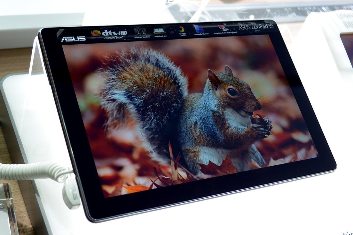 Megtartotta a cserélhető hátlapot, sőt, még egy opcionális billentyűzetes dokkolóval is kiegészült a ZenPad 10, amely háromféle kiépítésben lesz elérhető – WiFi-s, 3G-s és 4G-s változatban. A két kisebb modellben x3-as Atom, a 4G-s változatban pedig Z3560-as dolgozik. A tabletbe 1 vagy 2 GB RAM (WiFi/3G illetve 4G) és 8, 16, 32 vagy 64 GB-nyi háttértár kerül, a 10,1 colos kijelző pedig 1280×800 pixeles és IPS. A tablet érdekessége a mindössze 7,9 mm-es vastagság és az, hogy az ASUS egy billentyűzetes dokkolót is készít majd hozzá – ám ezt a Computexen egyelőre még nem lehetett megnézni.