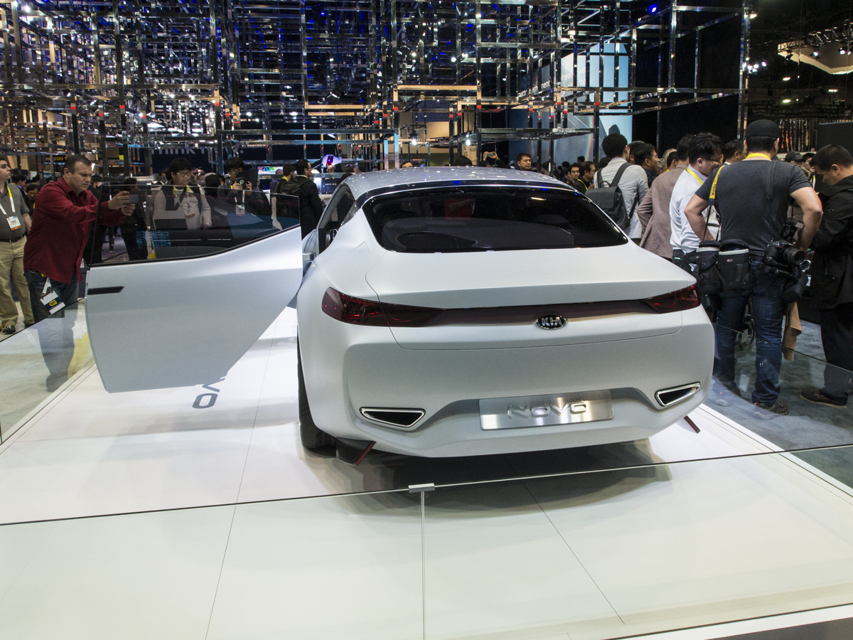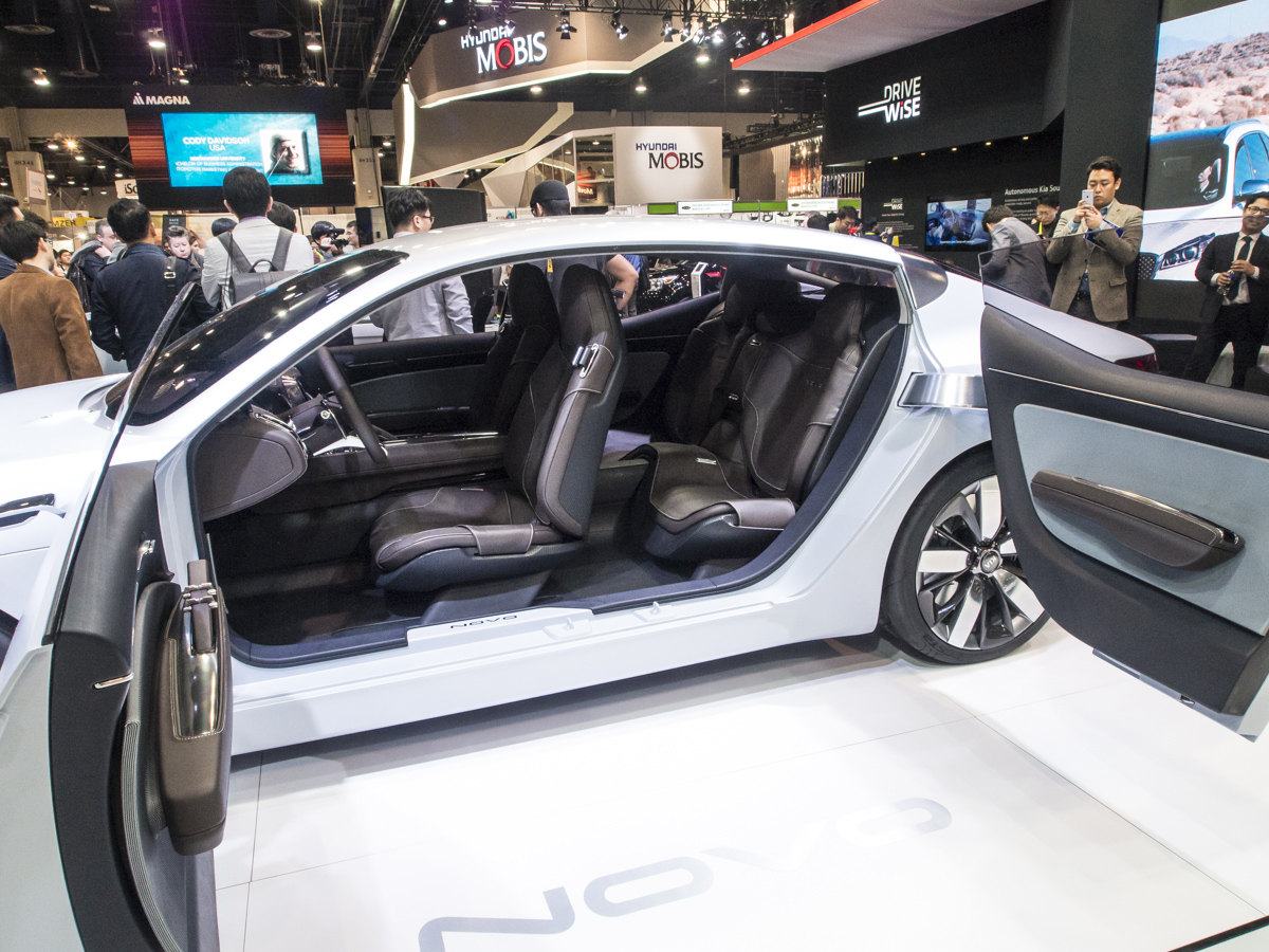 A Kia stand vizuálisan legérdekesebb pontja a Kia Novo Concept autója volt, amiben a jövő autójának kezelőfelületét demonstrálták. A mobiltelefonokhoz hasonlóan ebben is megjelent az ujjlenyomat-olvasó, ami a sofőr azonosítása után visszatölti a sofőr által elmentett korábbi beállításokat. Sajnos a Kia nem nem hisz még eléggé az elektromos autózásban, így ez a koncepcióautó még benzinesként jelent meg (már ha egyáltalán van jelentősége egy igazából működésképtelen koncepció autónál a meghajtás módjának).