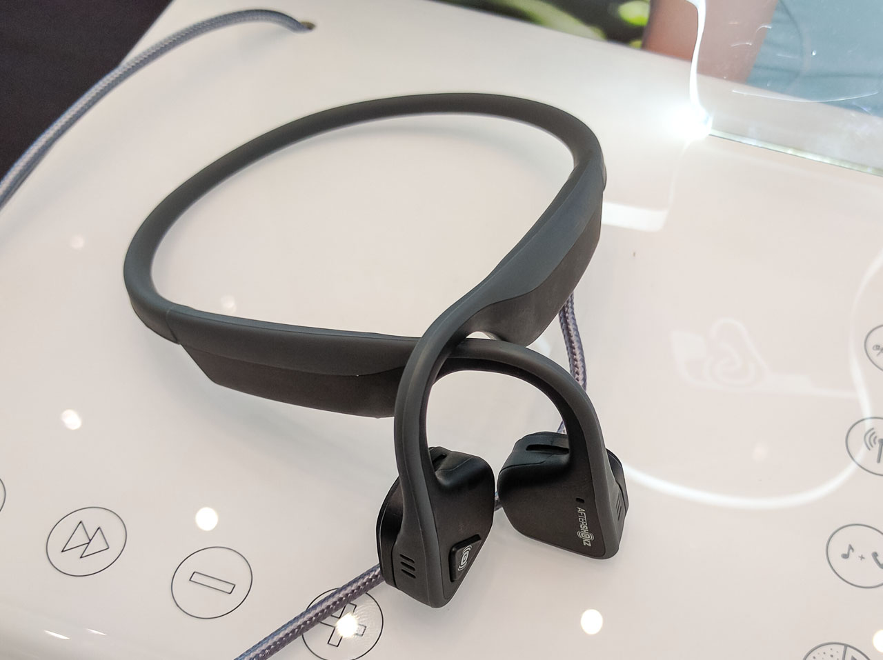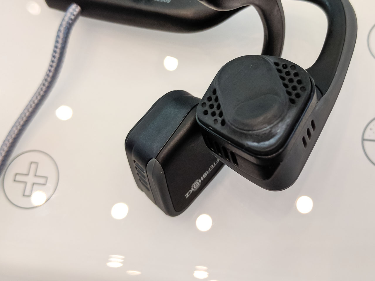 A standnál végzett rövid teszt során elég jó tapasztalatokat szereztünk a TREKZ-zel, a zene meglepően tisztán szól, ahhoz képest, hogy a tömeg zsibongását is jól halljuk közben. A viselését viszont meg kell szokni, furcsa érzés, hogy nem a fülünkön, hanem az előtt kell megülnie a kagylóknak. A gyártó egyébként azokra a szituációkra is gondolt, amikor igenis csak a zenére szeretnénk figyelni, a dobozban ugyanis a hordtáska mellett füldugó is van.