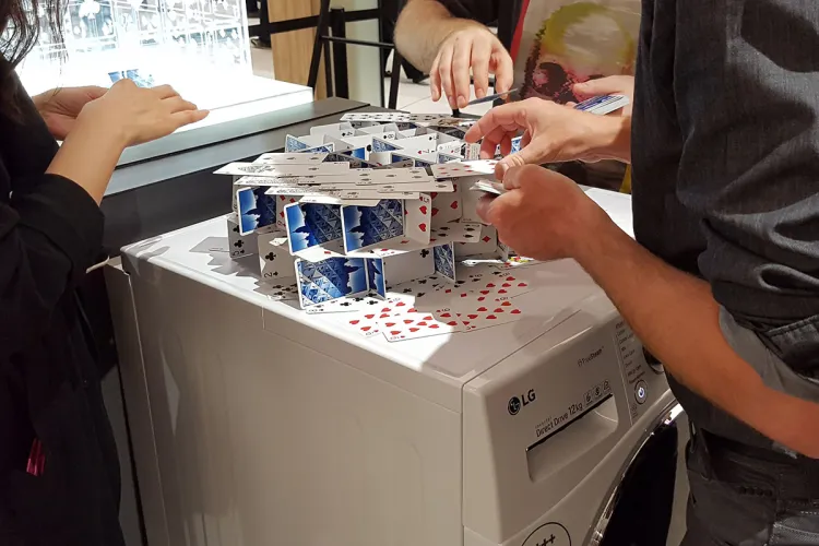 Ha ezt a kijelentést vennénk alapul, akkor nyugodtan kijelenthetnénk, hogy az LG standján nem csak épeszű emberek dolgoznak – de valójában persze egészen más okból épült kártyavár az év elején, a gyártó CES-en bejelentett Signature termékcsaládba érkező mosógépe tetejére.