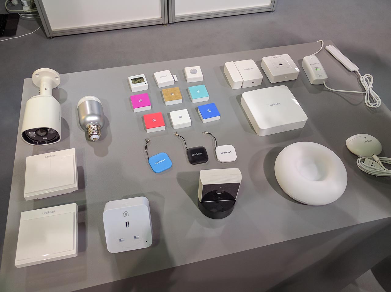 Elképesztő mennyiségű okosotthonos kütyüt lehet találni az IFA-n. Vannak cégek, akik csak néhány komponenst gyártanak, de például a LifeSmart több mindennel is rendelkezik, amire szükség lehet: van IP kamerájuk, ujjlenyomatos, Wi-Fi kapcsolattal és kamerával rendelkező ajtózárjuk, mozgásérzékelőjük, konnektorjuk, és így tovább. Az előtérben jobbra látható UFO-szerű eszköz egy IR-adó, amivel az infravörös LED-del vezérelhető eszközeinket (például tévé) irányíthatjuk, a mögötte fekvő dobozka pedig egy Wi-Fi hub, ami a Wi-Fi-n át működő okosotthonos kütyükhöz (például Hue) csatlakozik. Maga a LifeSmart rendszer a 433 MHz-es RF szabványt használja a kommunikációra.