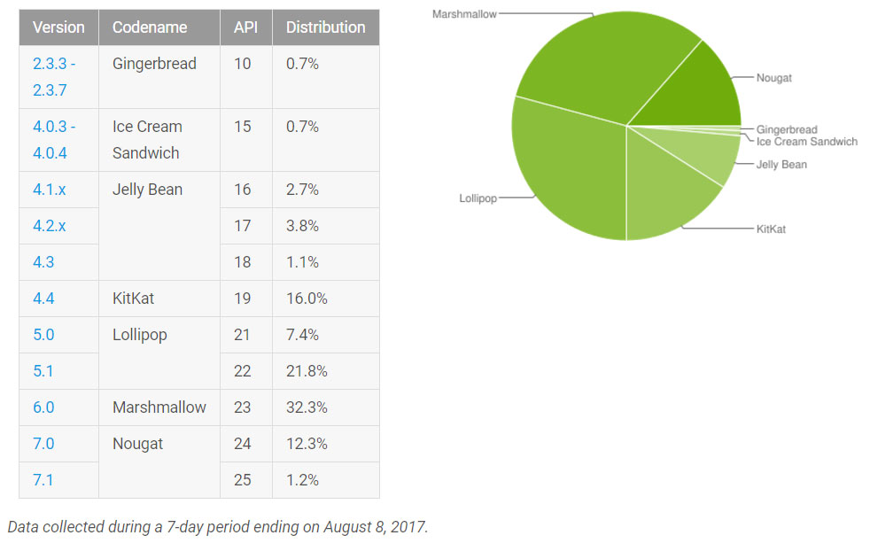 Fájóan alacsony az Android 7 részesedése