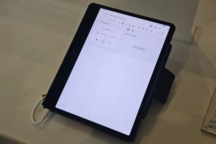 A jegyzetelést nemcsak a T-Pen és az optimalizált rendszer segíti, hanem a nyolc darab beépített mikrofon is, amivel a tablet nemcsak 360 fokban képes rögzíteni a hangot, hanem azt is meg tudja mondani, hogy a beszéd milyen irányból jön. A jegyzeteléshez AI funkciók is kapcsolódnak, többek között hanganyagok leirata készíthető el, valamint összefoglalók is róluk. Magyarul viszont, szokás szerint, ezek a szolgáltatások nem tudnak.