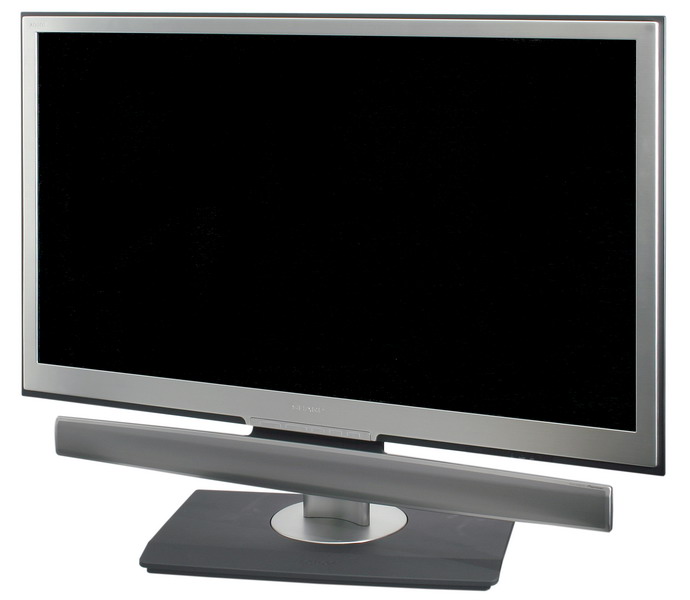 A tévé ezüstszínű, a káva szálcsiszolt alumíniumra hajaz, viszont műanyagból készült. Ebben az esetben ez nem gond, mert a tévé árába azért a minőségi anyagválasztás és az igényes kivitelezés belefért. Az sem baj, ha a tévét nem falhoz tesszük, mert a hátsó rész kialakítására is ügyeltek a tervezők. A vékony kialakítás miatt a hangszórók is külön házba kerültek. Ezeket egyébként nem a Sharp, hanem a Pioneer gyártja.