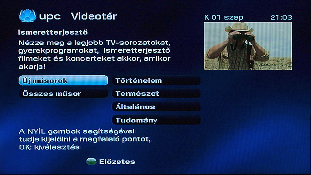 Az online videotéka kiváló, hiszen a hagyományos rendszerekhez képest rengeteg előnyt tud felmutatni. Ezek közül a legfontosabb természetesen az, hogy ezentúl nem kell elmennünk a filmért és ugyanígy visszavinnünk sem kell - habár nyáron jól esik a kis séta, szakadó esőben vagy mínusz 10 fokban nem igazán. Megspórolhatjuk a bosszankodást is, mert az online videotékában mindig bent van a kiválasztott film. Vannak nyilván hátrányok is; ha bármilyen okból a UPC szolgáltatása elérhetetlen, akkor a téka is az, így a kényszerű adásszünetet nem tudjuk egy kellemes filmnézéssel áthidalni. De ennyit az általánosságokról, lássuk, mit tud pontosan a UPC Videotár!