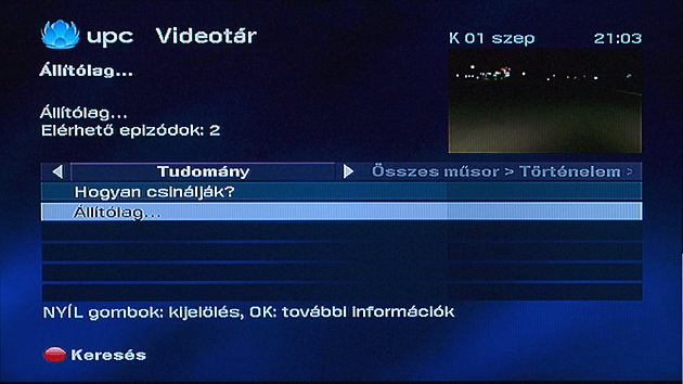 Az Ingyenes és az Akciós ajánlat kategóriák neve beszédes, utal a tartalomra de egyelőre nincs bennük semmi (pedig ingyenes tartalom már van). Végül az Elkezdett műsorok: innen érhetők el a kölcsönzött filmek a kölcsönzés időtartama alatt.