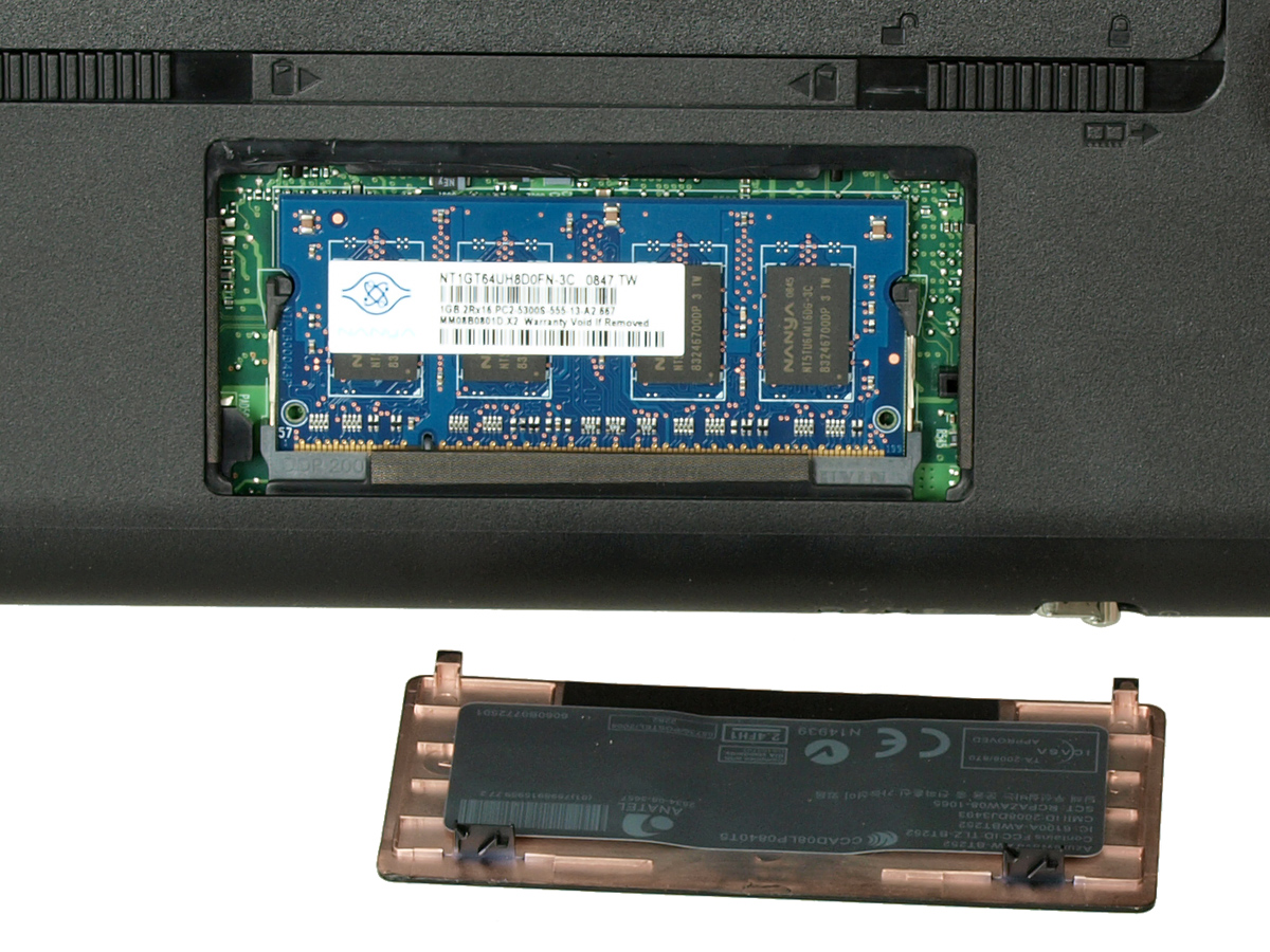 Az egyetlen memóriahely DDR2-es memóriamodulokat fogad, a netbook viszont a gyárilag már beépített 1 GB-nál nagyobbat nem kezel, így igazából lényegtelen, hogy cserélhető. Az akkumulátor a természetes elhasználódás után könnyen cserélhető, a merevlemez méretének növeléséhez viszont a gépet is szét kell bontani.