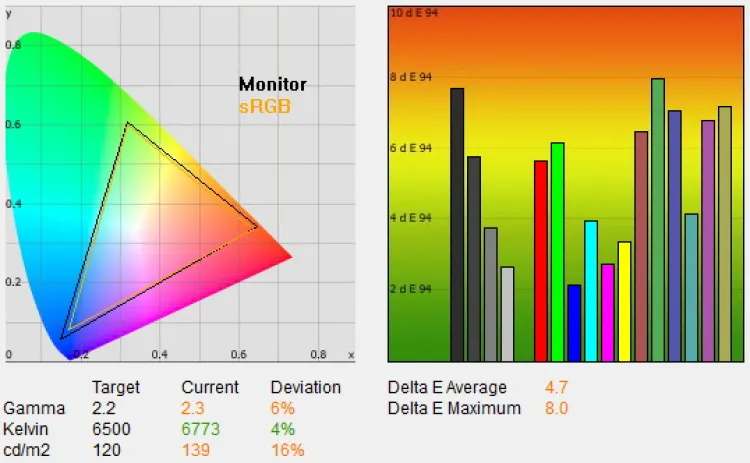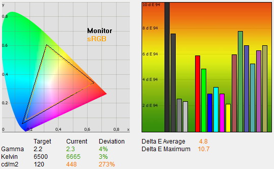 Ezekkel a beállításokkal 2,3-as gammát, 139 cd/m²-es fényerőt, kiváló, 0,05 cd/m²-es feketét, 2780:1-es kontrasztot, 6773K-s színhőmérsékletet és 4,7-es deltaE-t kapunk, valamint a sötét árnyalatok is a helyükre kerülnek; a színek továbbra sem lesznek tökéletesen pontosak, de a részletek előbújnak.