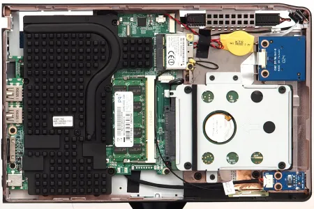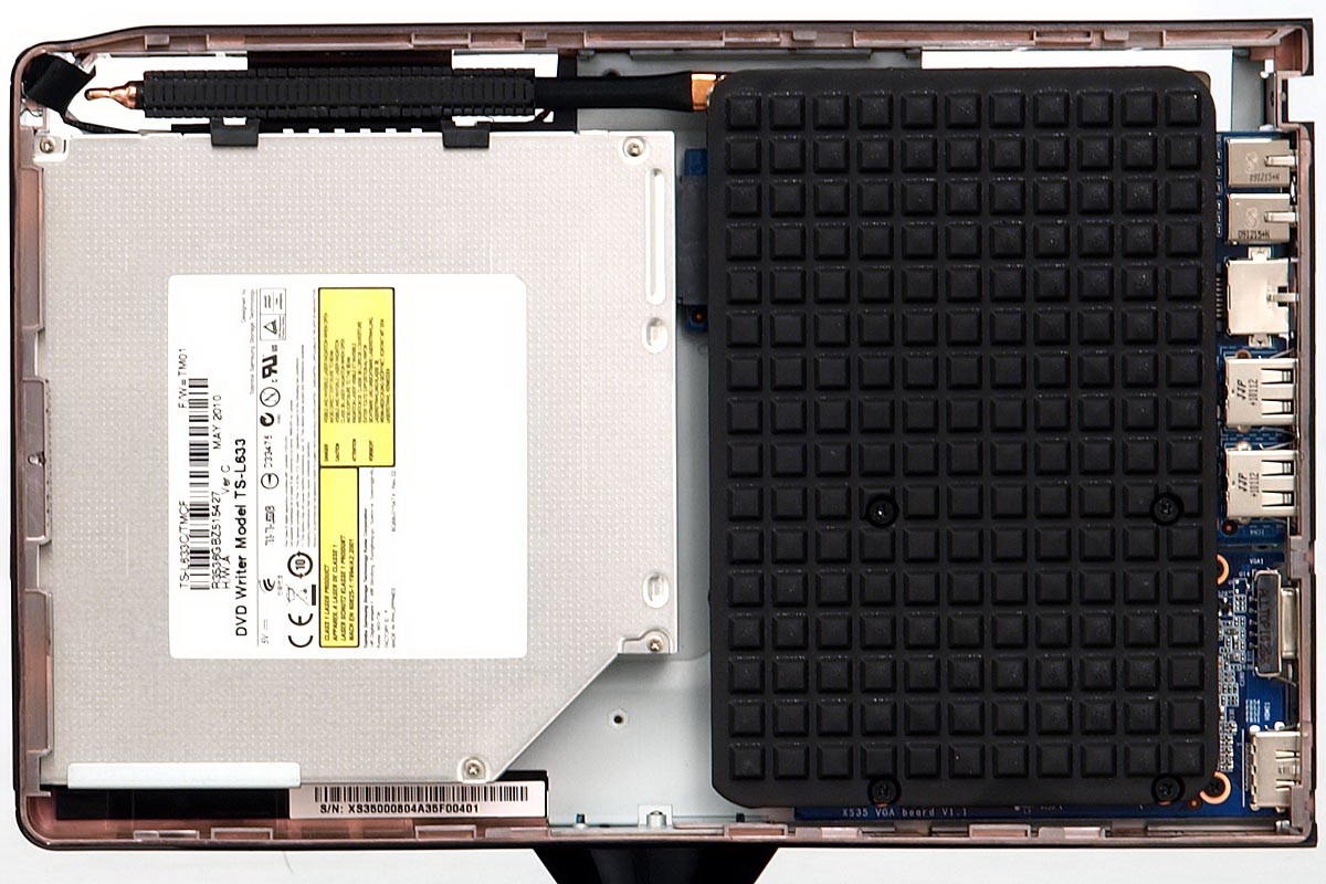 De térjünk vissza tesztalanyunkhoz! Az XS35GT-804 processzora egy Intel Atom D510-es, róla annyit kell tudni, hogy 1,66 GHz-es frekvencián működik, kétmagos és még a Hyper-threading technológiát is támogatja, így az operációs rendszerek felé négy processzormag látszik. A memória mérete 2 Gbájt, a HDD 500 Gbájtos (és 2,5 colos), és kapunk egy DVD-írót is. Ahogyan korábban már kiderülhetett, ebben a gépben az NVIDIA ION 2 platform is helyet kapott, ami jobb grafikus teljesítményt jelent, illetve azt is, hogy kapunk HDMI kimenetet – a Shuttle ugyanis az integrált grafikus magot tartalmazó verziókra csak analóg D-Sub csatlakozót szerel. Az alaplapi hangvezérlő chip az IDT92HD81, ez sajnos csak 2.1 csatornás és csak analóg. Természetesen az NVIDIA ION 2 is tartalmaz egy hangchipet, de ahogyan korábban már említettük, ez csak akkor használható, ha a kép mellett a hangot is a HDMI kimeneten szeretnénk továbbítani. Van vezetékes és vezeték nélküli hálkózati vezérlő is, azonban sajnos az Ethernet adapter csak 100 Mbites, ami mindenképpen csalódás. A WLAN adapter n-es, sebessége legfeljebb 150 Mbps lehet.