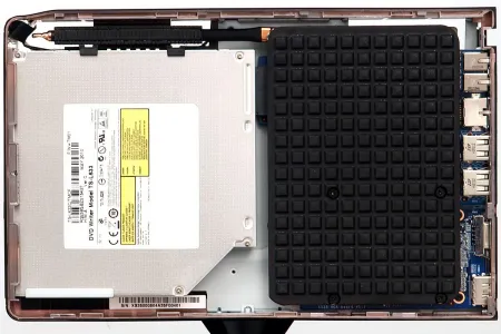 A be- és kimenetek egy részéről már ejtettünk néhány szót korábban, így kiderült, hogy az előlapon egy USB port és egy négyfunkciós (SD, SDHC, MS, XD) kártyaolvasó található. Hátul további négy USB port kapott helyet a HDMI és a D-Sub kimenetek társaságában, valamint itt találjuk az audio csatlakozókat és a hálózati csatlakozót. A készülékház WiFi adaptert is rejt, ez azonban kívülről egyáltalán nem látszik.