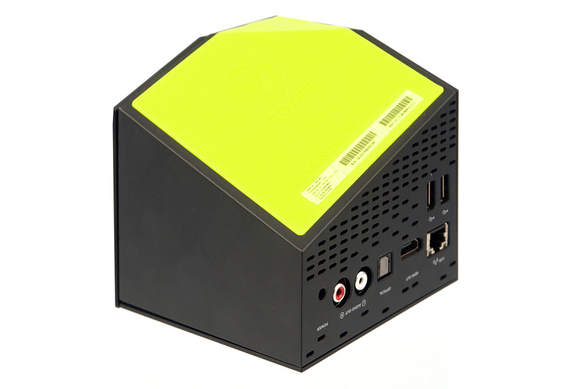 A külső mindenképpen extravagáns, viszont nem a legpraktikusabb, mert a csatlakozók, az előlapi kijelző illetve a bekapcsoló gomb sem olyan helyre kerültek, mint amit egy „normális” külsővel megáldott médialejátszó vagy HTPC esetében elvárnánk. A bekapcsoló gomb a kocka felső lapjára, mélyen hátra került, és nem túl jó az sem, hogy a csatlakozók iránya nem párhuzamos az asztal felületével; a tesztanyagot tartalmazó 32 Gbájtos USB stickünk vége például hozzáért az asztal lapjához.