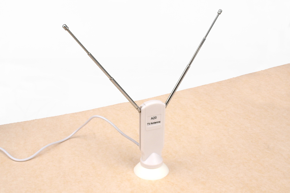 Az Alcor Conax USB-vel ellentétes rövid oldalán az antenna csatlakozója kapott helyet. Ez egy normál RF csatlakozó, így az Alcor Conax bármilyen szobaantennával használható. A csomagolás a távirányító mellett egy apró antennát is rejt még, amelyhez kétféle talp is jár, egy tapadókorong illetve egy csíptető – ez utóbbival a notebook kijelzőjének tetejére tudjuk rögzíteni az antennát. A mellékelt antenna mérete nem túl nagy, de ha jó a rálátás az adótoronyra, akkor megfelelő jelerősséget tud biztosítani.