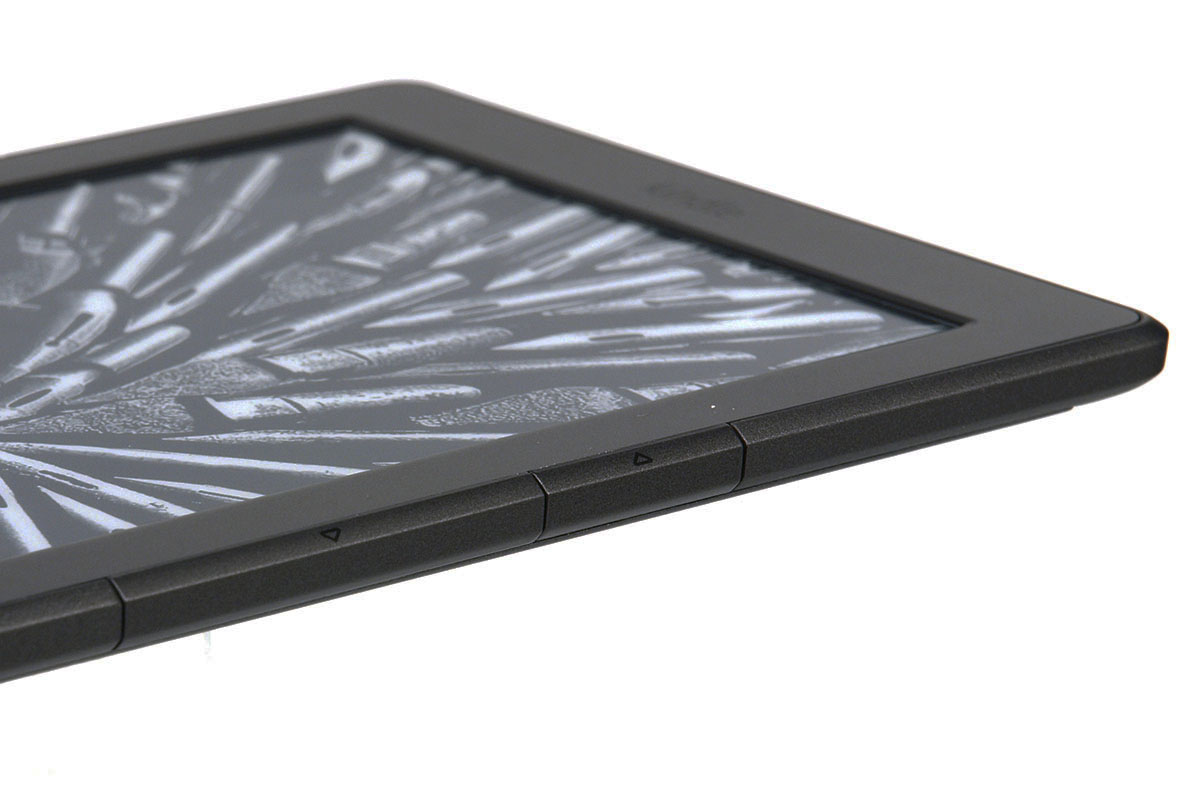 A teljesen műanyag felépítésnek azért van egy nagy előnye is: a 165×114×8,6 mm-es kütyü mindössze 170 grammot nyom, azaz semmivel sem nehezebb, mint egy átlagos könyv – még akkor sem fog elfáradni kezünk, ha órákat tartjuk.