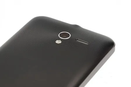 A hátlapot nem lehet leszedni, ez mindenképp fontos, mert később az akkumulátor házilag nem cserélhető. A fedlap, mint már mondtuk, műanyagból készült, de szerencsére nem a gagyi fajtából. Felülete nagyon szép, körkörös mintázat található rajta; ez nemcsak a dizájn szempontjából jó, hanem a fogás is stabilabb. Felülre a hátlapi kamera került egy LED-es villanó társaságában, tőlük jobbra pedig a külső hangszórót találjuk. A kamera lencséjétől indul a körkörös mintázat, hangsúlyozva ezzel az objektívet. Alul a Padfone felirat díszeleg.
