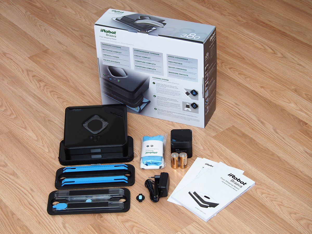 A robothoz a gyártó nem mellékel dokkolót, tartólapot, távirányítót, virtuális falat és szállító táskát sem, de egy gyors töltő dokkoló opcionálisan vásárolható hozzá, amivel a töltés a normál 4 óra helyett 2 órára rövidíthető. Az Észak Amerikában forgalmazott Braava 380t modell ezt a dokkolót is tartalmazza, de ezt és a töltő adapterét leszámítva teljesen azonos az általunk bemutatott Braava 380 robottal.