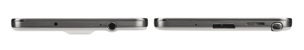 A bal és a jobb oldalon a hangerőszabályzó gombpáros illetve a bekapcsoló gomb helyezkednek el, utóbbi mellett pedig még egy mikrofont is találunk. Lent a beszélgetésnél használatos mikrofon, az USB 3.0 csatlakozó illetve az S-Pen található, míg a felső élre a jack hangkimenet, az infra port valamint egy harmadik mikrofon került.