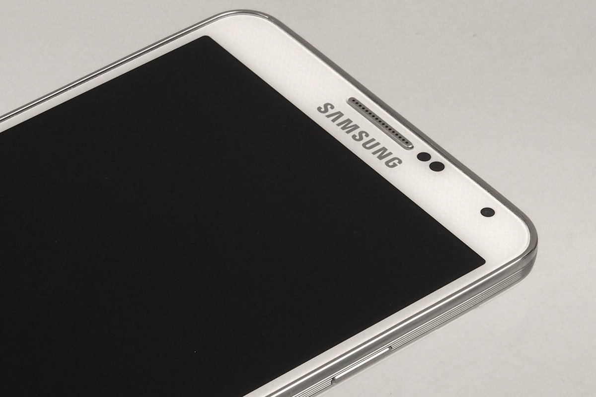 Az előlapon az 5,7 colos kijelző terpeszkedik. Felette és alatta is a Samsungnál megszokott kiegészítőket találjuk; a panel felső részénél eszerint a Samsung logót, a hangszóró rácsát, a szenzorokat és az előlapi kamerát kereshetjük, míg lent a kezeléshez szükséges gombokat, a szokásos elosztásban. Azaz három gombot kapunk, amelyek közül a bal és jobb oldali (menü és vissza) érintősek, a középső pedig (Home) valóban megnyomható.