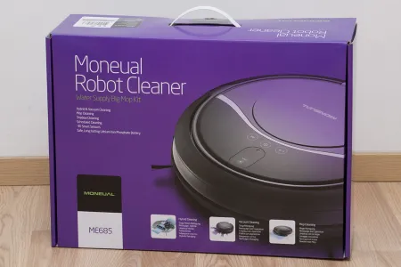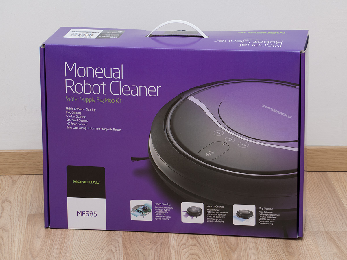 A Moneual ME685 egy véletlenszerűen mozgó, tehát nem térképező és nem szisztematikusan takarító robot. Legnagyobb érdekessége, hogy a két oldalkefével és kefés hengerrel megtámogatott porszívó funkció mellett vizes felmosási lehetőséget is kínál. Ez utóbbihoz nem csak egy tépőzárral rögzíthető mikroszálas rongyot, hanem ahogy a listában is látszott, egy víztartályos tartót is mellékelnek. Ez tartja takarítás során nedvesen a törlőkendőt, ami így hatékonyan fel tudja oldani a padlóra száradt szennyeződéseket.