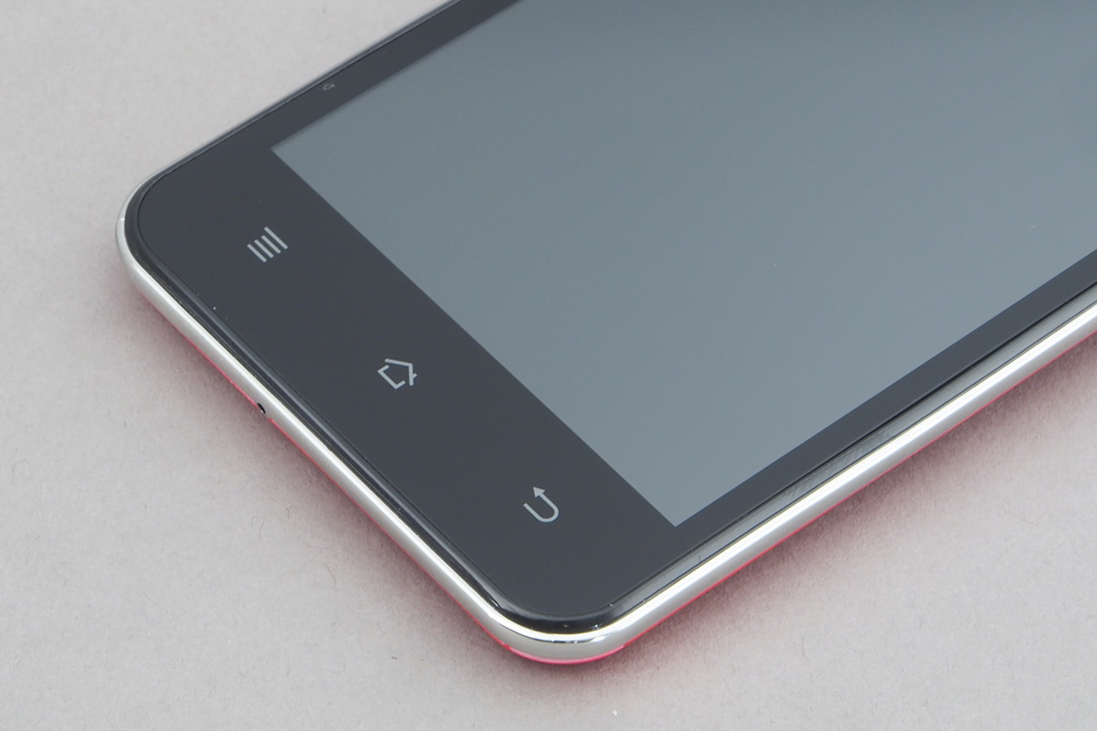 Két oldalt a káva nem túl vékony, de nem is vastag; az Overmax Vertis 4510 EXPI éppen olyan széles, mint a 4,6 colos kijelzővel rendelkező Sony Xperia SP. A kijelző felet a hangszóró rácsa, tőle jobbra az előlapi kamera, balra pedig a fénymérő és közelségérzékelő szenzorok található. A panel alatt fizikai gombokat is találunk, szám szerint hármat. Ha balról jobbra haladunk, akkor a sorrend a következő: menü, Home és vissza. A feladatkezelő nem kapott külön indítót, de nem kell lemondanunk ennek gyors eléréséről sem: a Home gombot nyomva tartva indíthatjuk el.