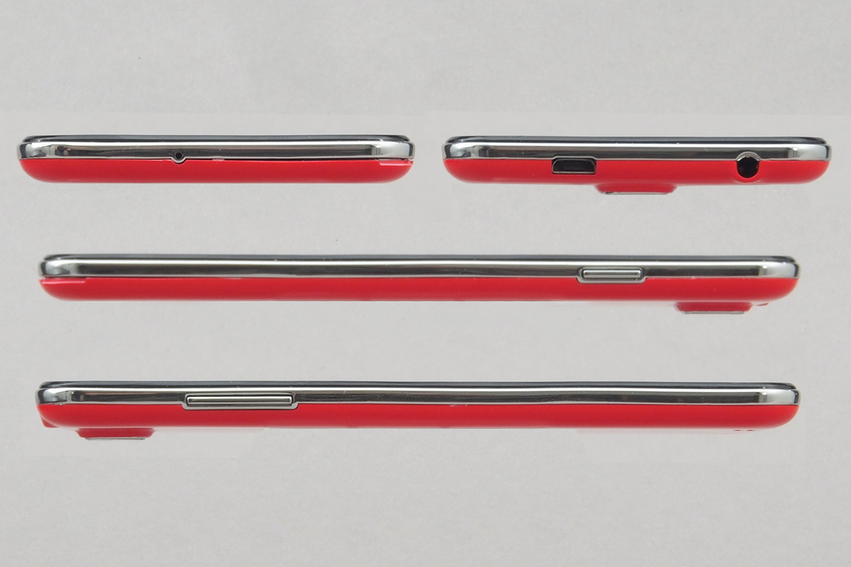 Két oldalt a szokásos gombokat találjuk: balra a hangerőszabályzót, jobbra pedig a bekapcsoló gombot helyezték el a mérnökök. Utóbbi jobb, hogy oldalt van; kedvelt pozíció a felső él is, de 4,5 col környékén már nem kényelmes arra felé nyúlkálni minden egyes bekapcsolásnál. A felső él ennek megfelelően csak a fülhallgató kimenetnek illetve a microUSB portnak ad helyet, ami persze még mindig több annál, ami lentre került: itt ugyanis csak a mikrofont találjuk.
