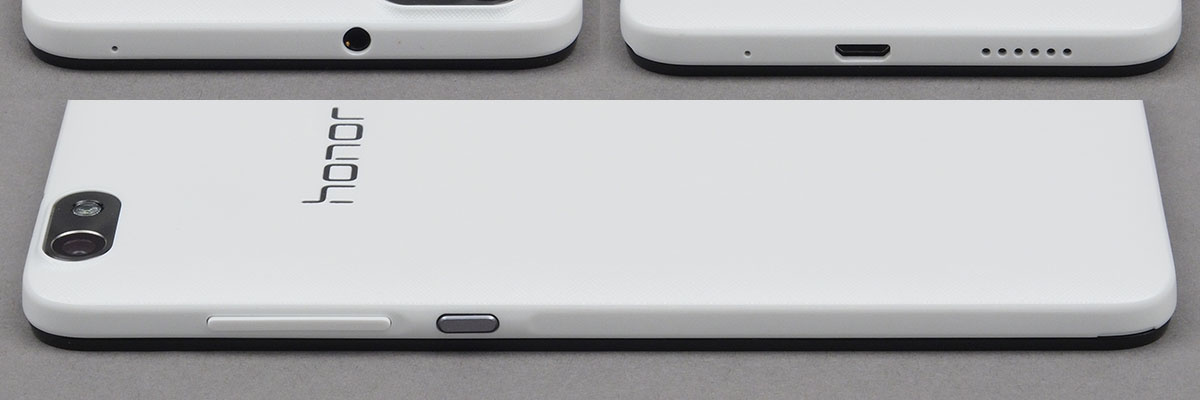 Az akku oly annyira nem elsődleges, hogy még csak másodlagosnak sem mondhatjuk, mivel nem is látszik; a telep nem is cserélhető házilag. A telefon bal oldala üres, a két fő gomb a jobb oldalra, annak is a felső részére került. Fent és lent egy-egy mikrofon dolgozik, amelyet fent a fülhallgató kimenete, lent pedig a microUSB valamint a külső hangszóró nyílása egészít ki. A hátlap csak a fényképező és a hozzá tartozó LED-es villanót rejti, illetve itt azért már olvasható egy Honor felirat.