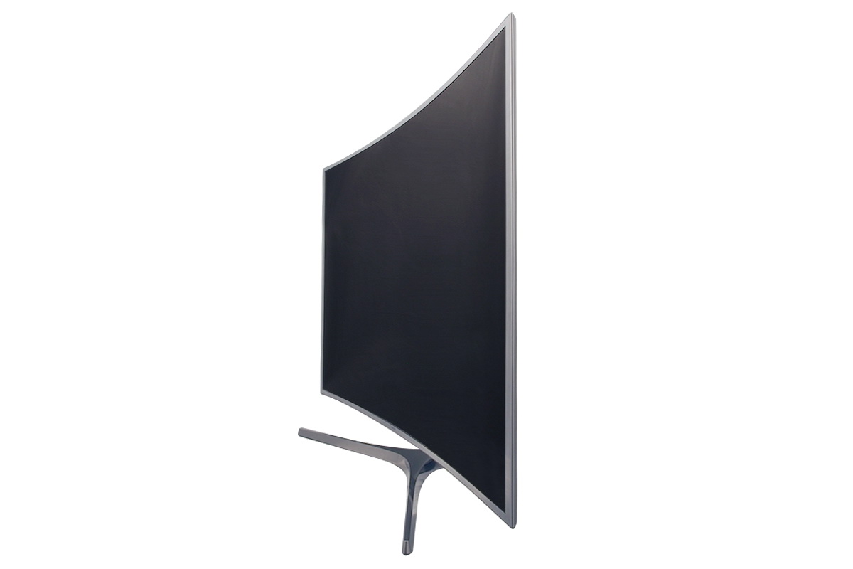 A Samsung legújabb csúcskészüléke minden tekintetben igyekszik a legjobbat nyújtani, ami a külsején is meglátszik. A tévé 55 colos képátlóval rendelkezik, és ezúttal látható is a készüléken, hogy nagy; a kialakítása sokkal inkább mondható monumentálisnak semmit visszahúzódónak. Amíg az LG arra törekszik, hogy a kávát minél inkább elvékonyítsa, adott esetben pedig akár el is tűntesse, addig a Samsung az UE55JS9000-nél egyáltalán nem ment el ebbe az irányba. A tévének masszív kávája és masszív talpazata van, ami persze nem biztos, hogy gond – a külső megítélése, mint mindig, most is főleg egyéni ízlés kérdése. A keret fémből készült, és a tévé összeszerelésébe sem lehet belekötni. A talp V alakú, amelynek szárai igen nagy szöget zárnak be egymással. A készülék teljesen szembe megy a mostani trendekkel, amelyek a minél kisebb, minél vékonyabb talpakat helyezik előtérbe. Viszont természetesen arra van lehetőség, hogy a talpat, úgy ahogy van, leszereljük. Erre főleg akkor lehet szükség, ha a tévét a falra szeretnénk feltenni – az ívelt kialakítás ellenére ugyanis ennek lehetőségét sikerült megtartani. Persze kérdés, hogy ki egy ívelt tévét akar-e bárki feltenni a falra, de ha igen, akkor a Samsung mérnökein nem múlik a dolog.